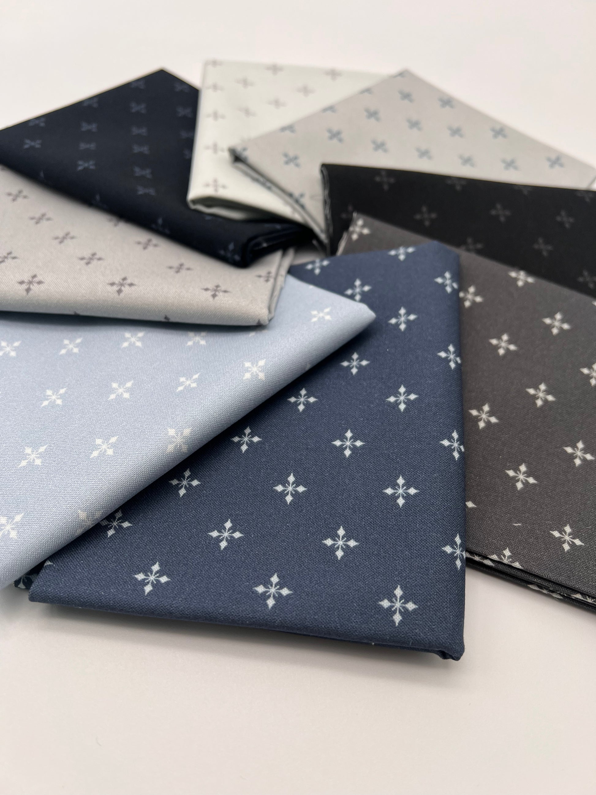 This bundle is Bently's Snowflakes by the Smithsonian Institution for Marcus and includes 8 Fat Quarters. The fabric selection is exactly as pictured. All fabrics are 100% cotton and quilt shop quality. Each cut of fabric is 18x21 inches.
