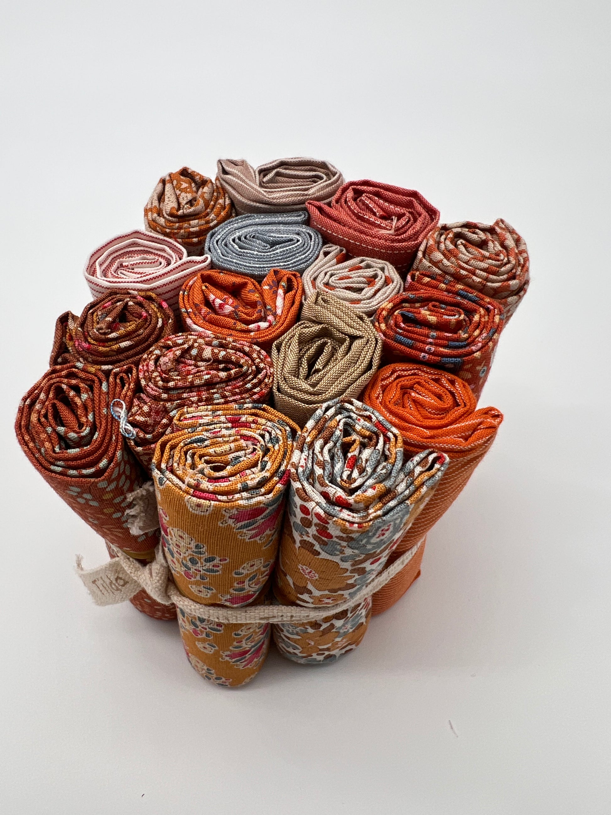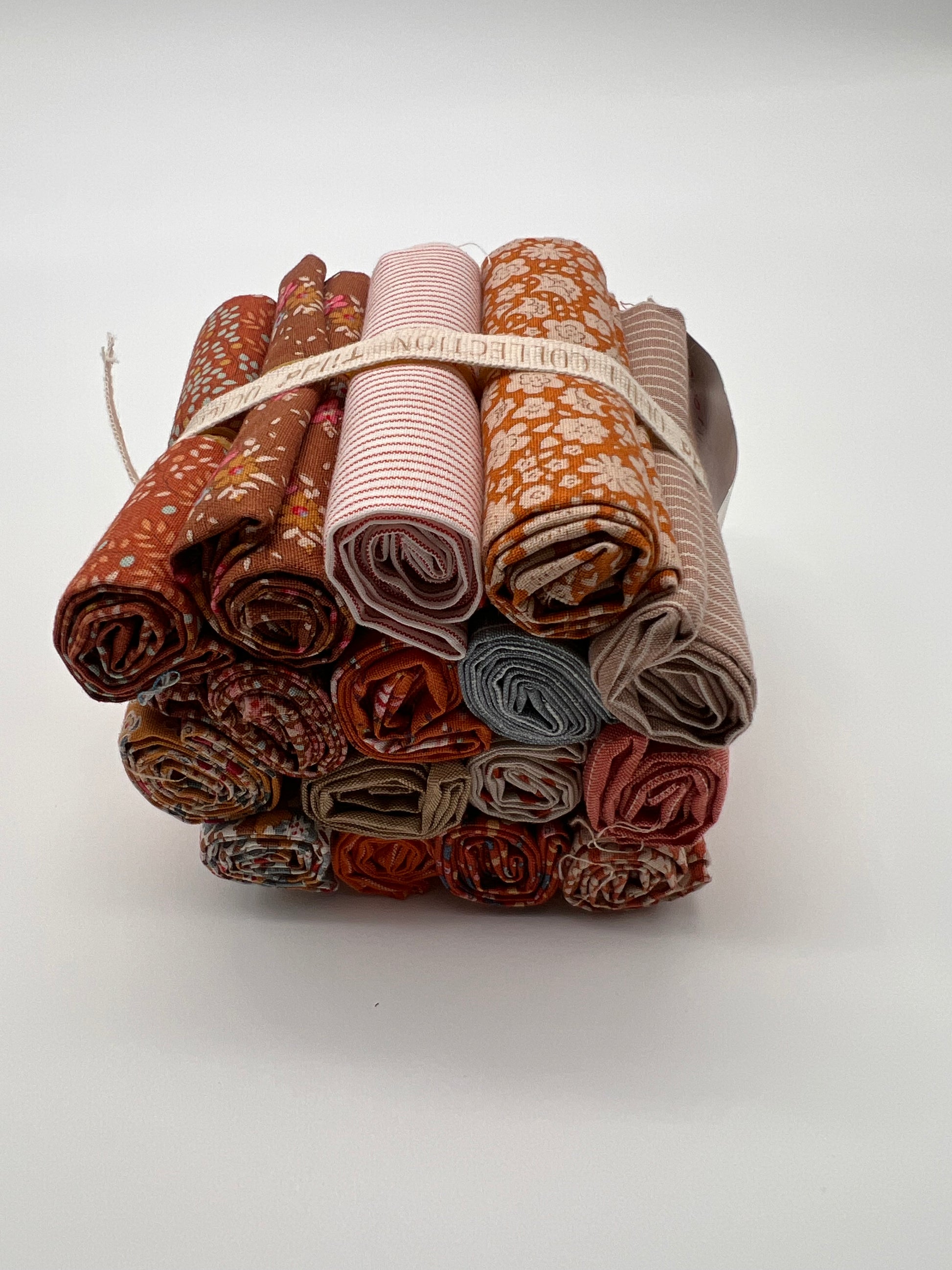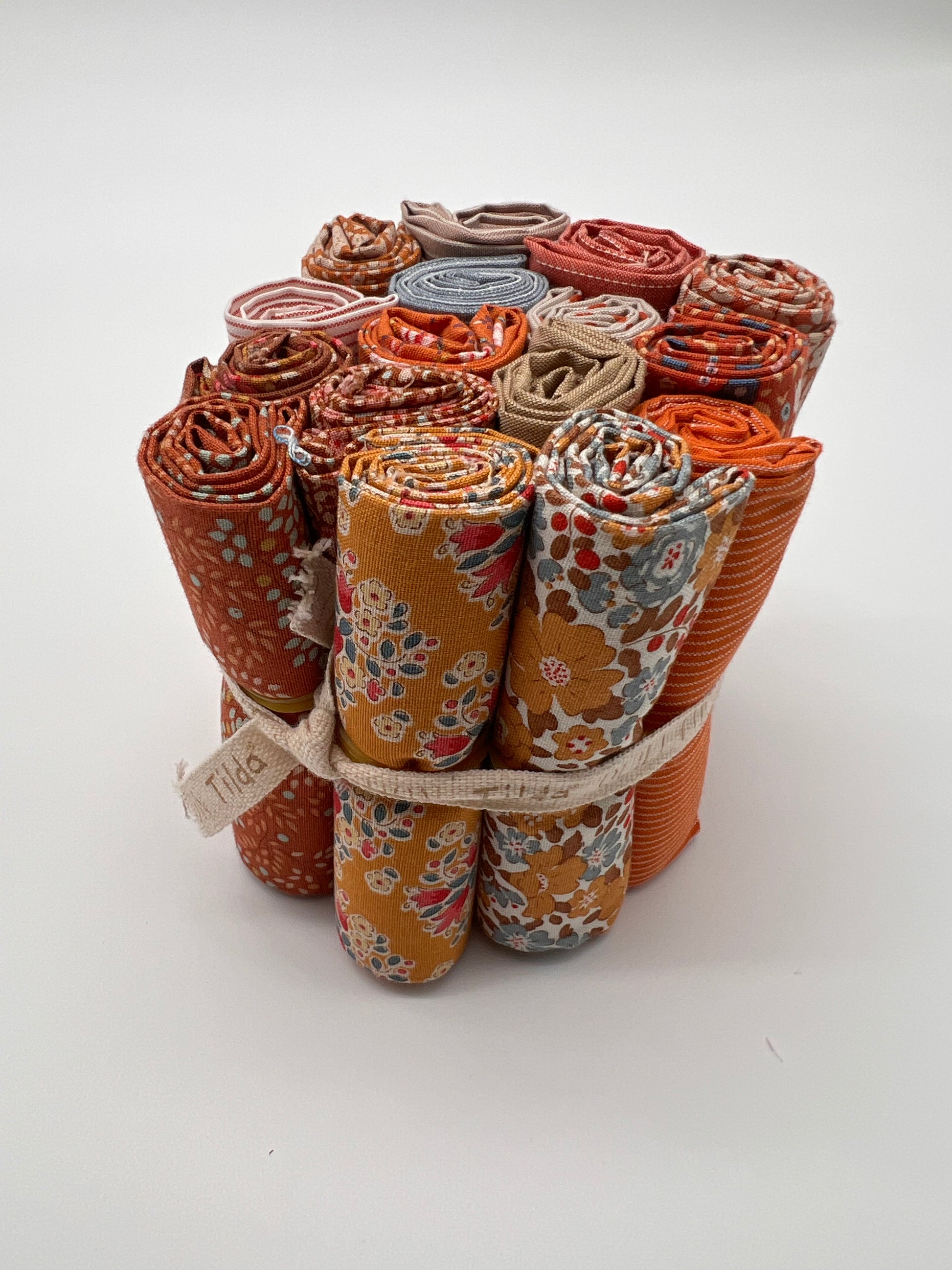This Fat Eights bundle is Creating Memories in Autumn by Tilda. The bundle includes 16 Fat Eights.The fabric selection is exactly as pictured. All fabrics are 100% cotton and quilt shop quality. Each cut of fabric is 20x11 inches.