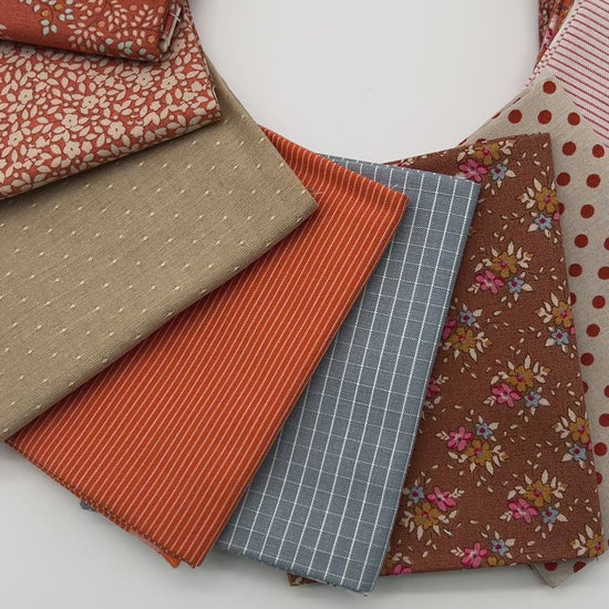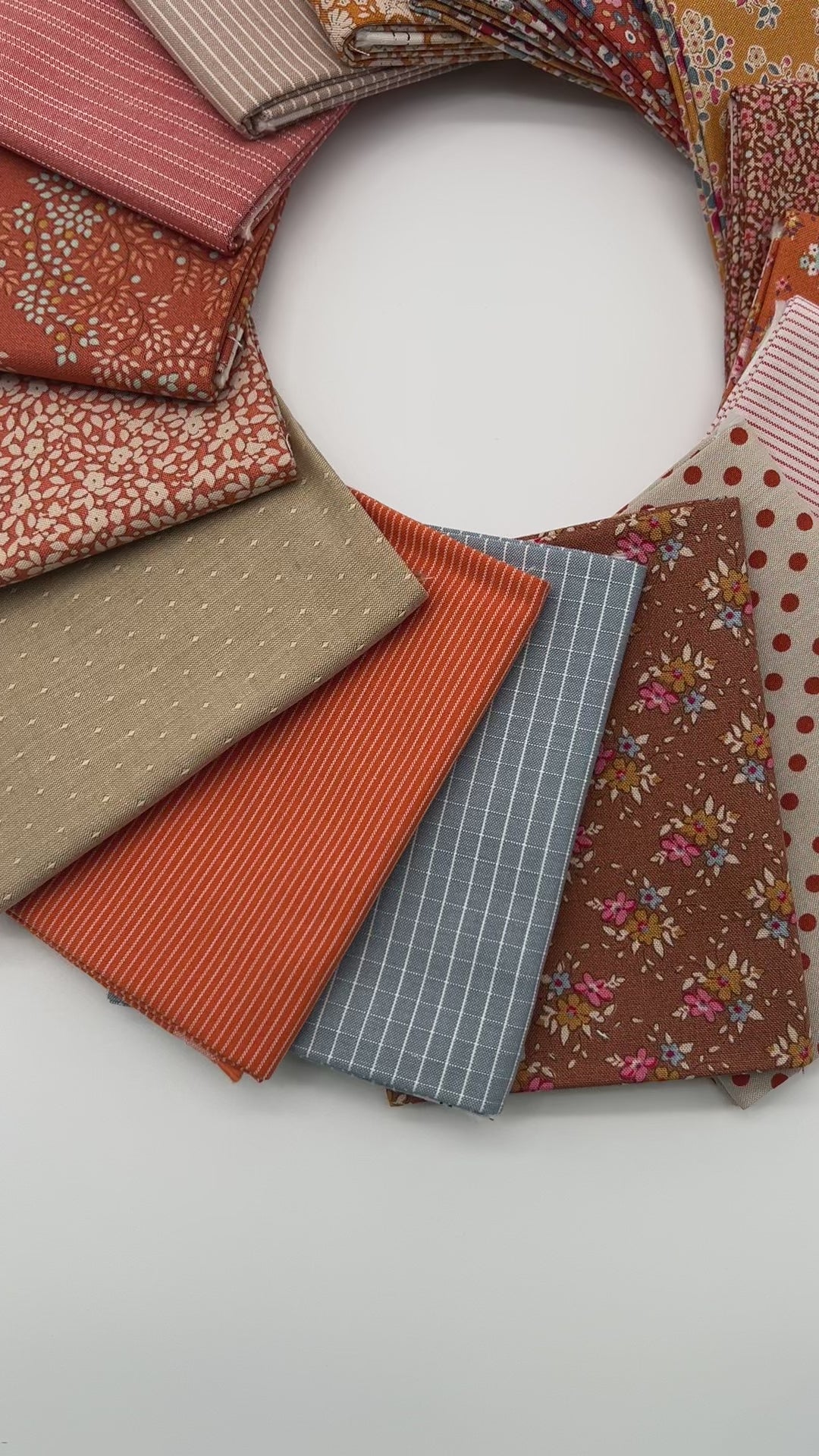This Fat Quarter Bundle is Creating Memories in Autumn by Tilda. This fat quarter bundle includes 16 Fat Quarters. The fabric selection is exactly as pictured. All fabrics are 100% cotton and quilt shop quality. Each cut of fabric is 18x21 inches.