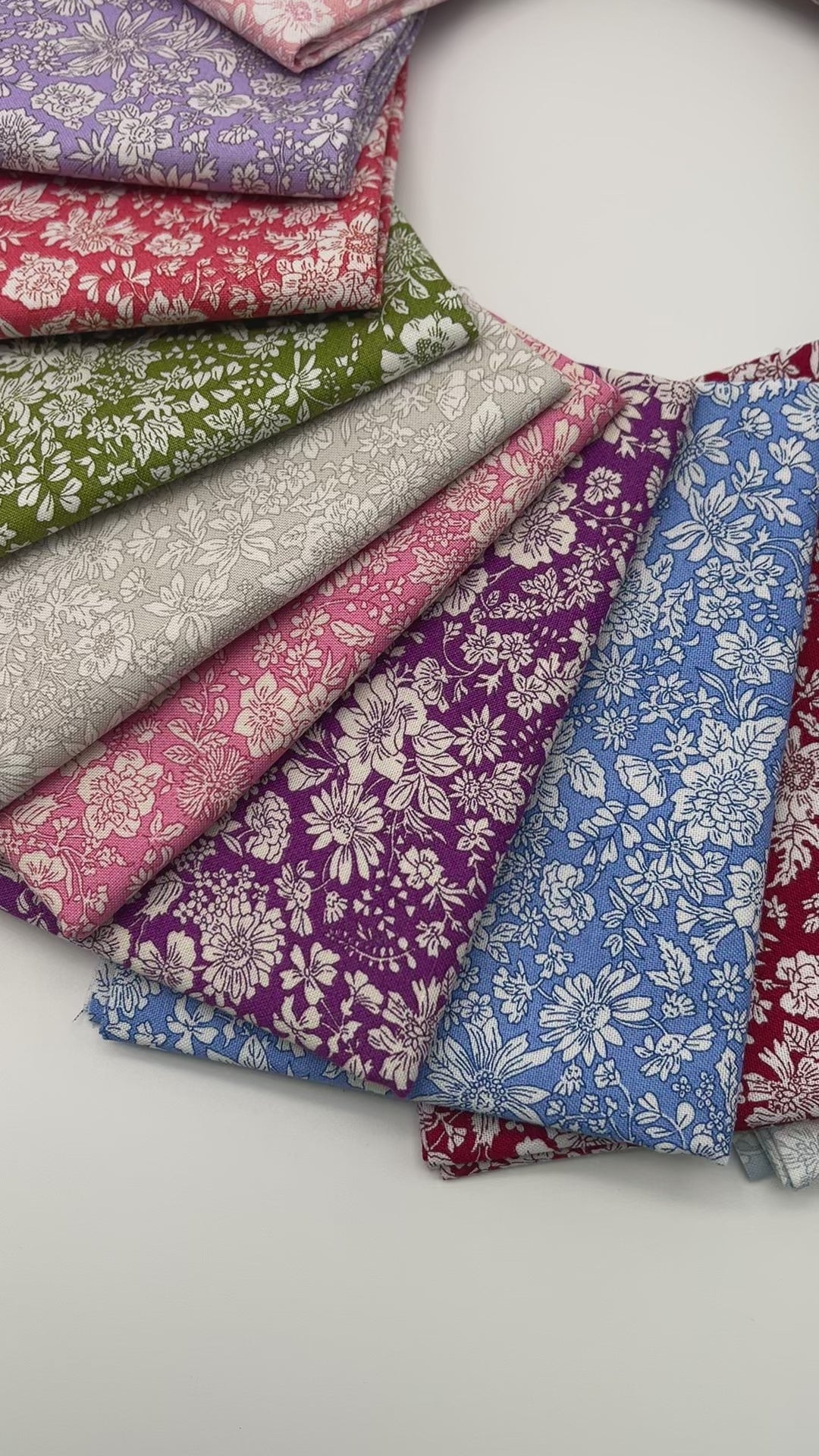 This bundle is Emily Bell by Liberty for Riley Blake and includes 20 Fat Quarters. The fabric selection is exactly as pictured. All fabrics are 100% cotton and quilt shop quality. Each cut of fabric is 18x21 inches.