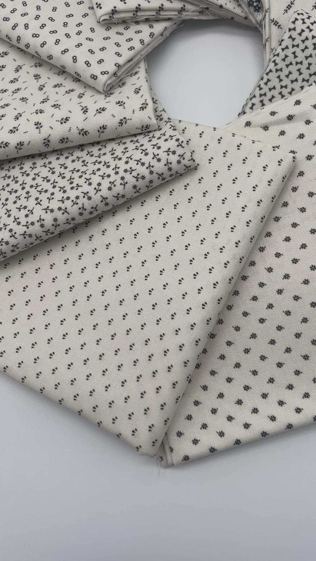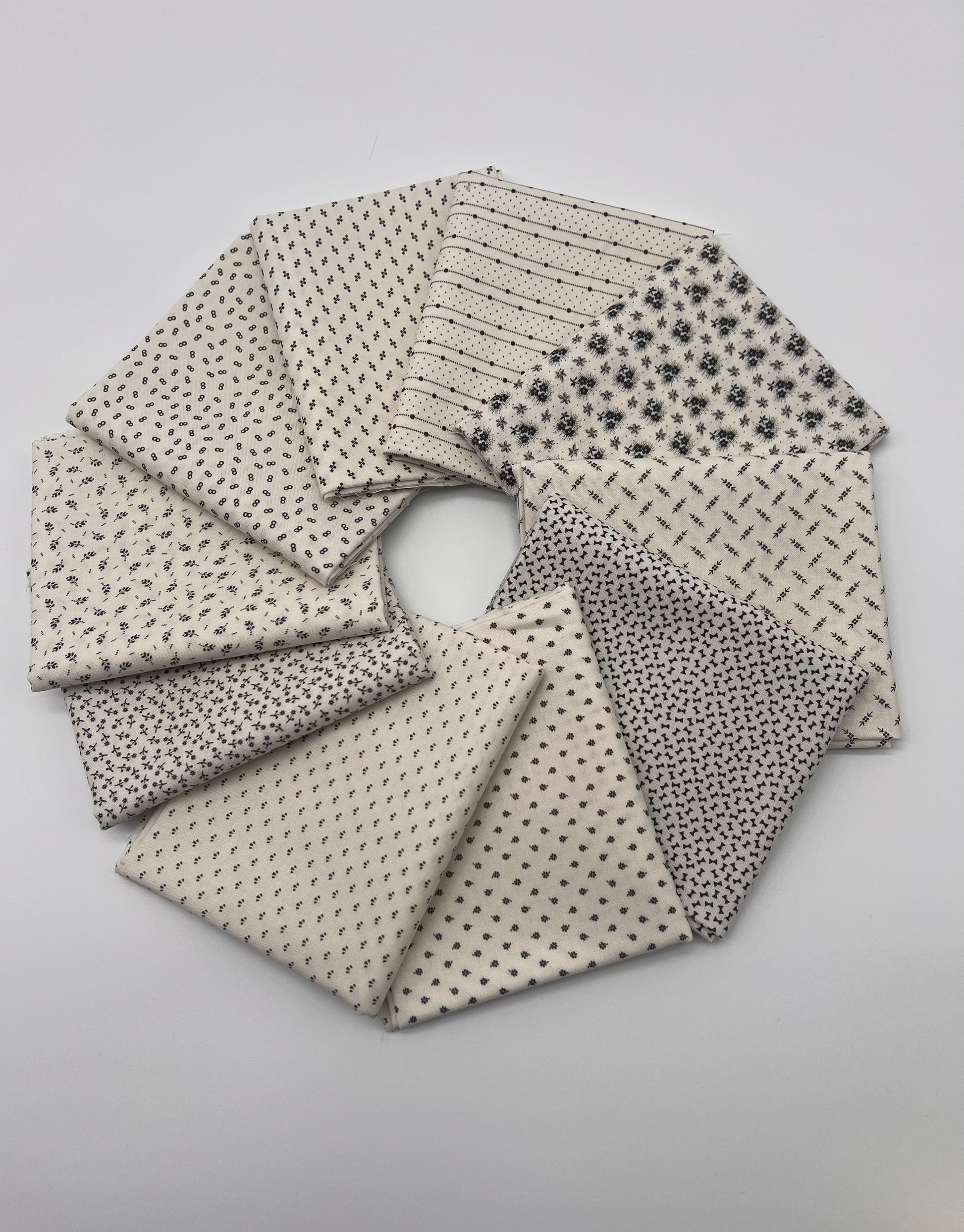 This bundle is Everyday Essentials and includes 10 Fat Quarters. The fabric selection is exactly as pictured. All fabrics are 100% cotton and quilt shop quality. Each cut of fabric is 18x21 inches.