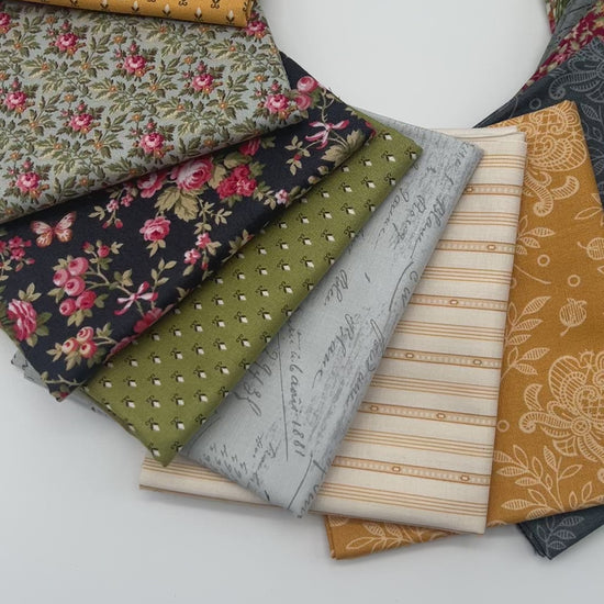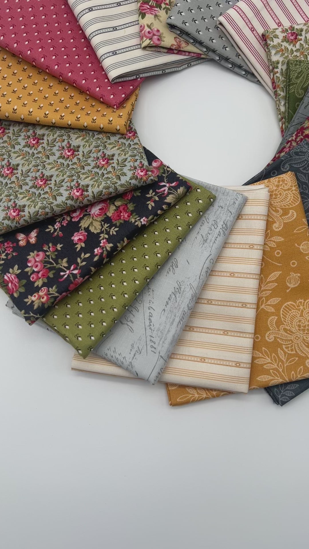 This bundle is French Mill by Andover Fabrics and includes 17 Fat Quarters. The fabric selection is exactly as pictured. All fabrics are 100% cotton and quilt shop quality. Each cut of fabric is 18x21 inches.