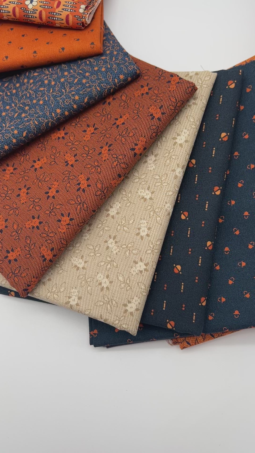 This bundle is Indigo & Cheddar by Judie Rothermel for Marcus Fabrics and includes 19 Fat Quarters. The fabric selection is exactly as pictured. All fabrics are 100% cotton and quilt shop quality. Each cut of fabric is 18x21 inches.