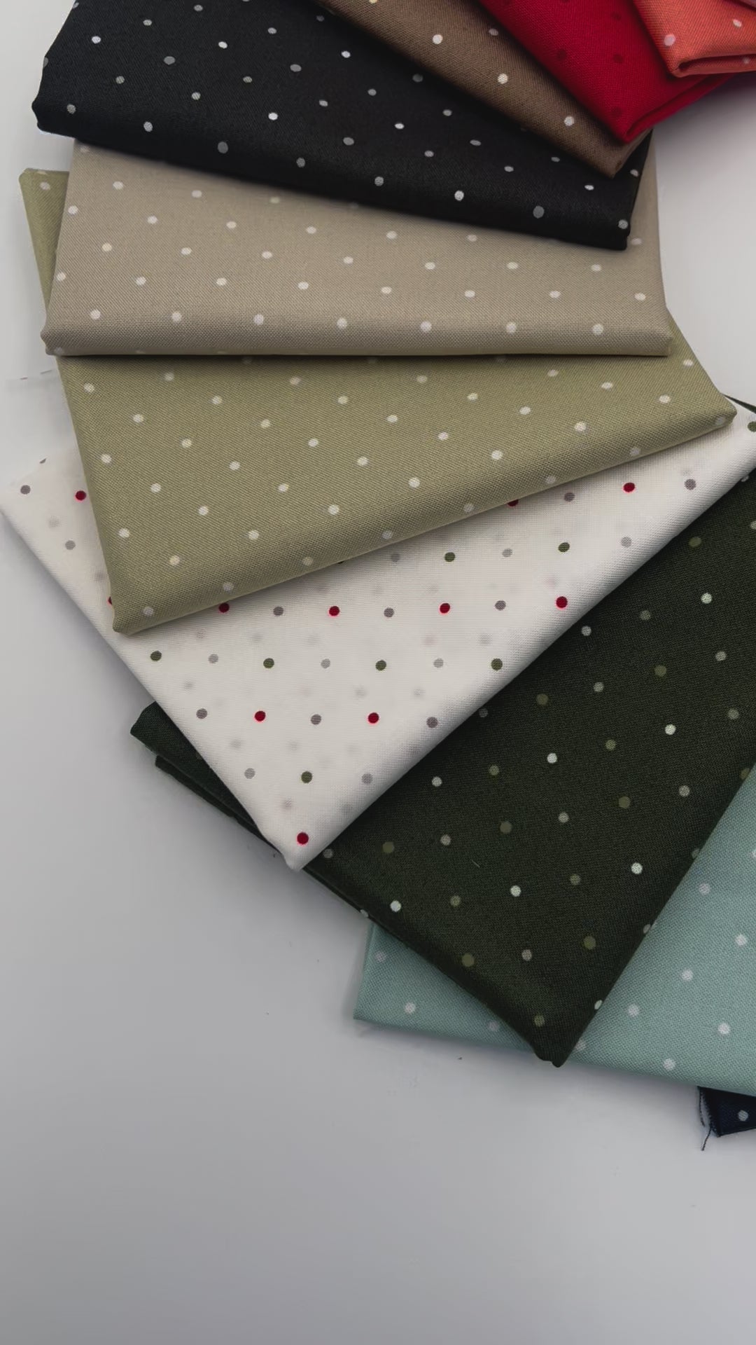 This bundle is the perfect complement to any project. The fabric line is called Magic Dot by Lella Boutique for Moda. There are 18 fat quarters included in this bundle. All fabrics are 100% cotton and quilt shop quality. Each cut of fabric is 18x21 inches.